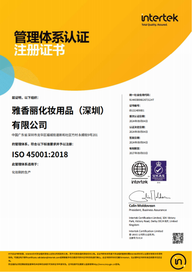 熱烈慶祝雅香麗化妝用品(深圳)有限公司榮獲質(zhì)量、環(huán)境和職業(yè)健康安全管理體系認(rèn)證!!!